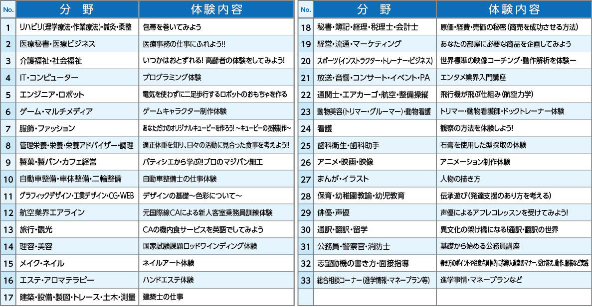体験内容一覧