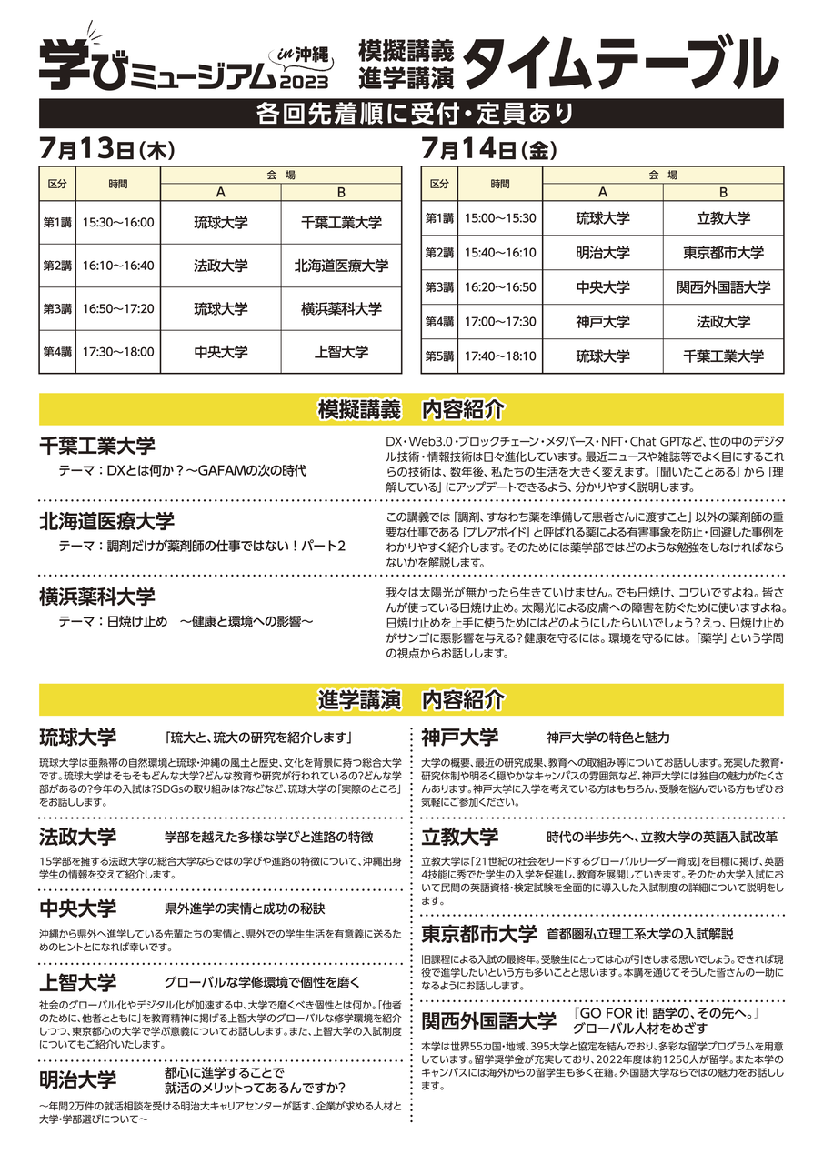 全国の国公私立大学・短期大学100校以上が参加!沖縄最大級の進学イベント「学びミュージアム in 沖縄」が2023年も開催されます。
